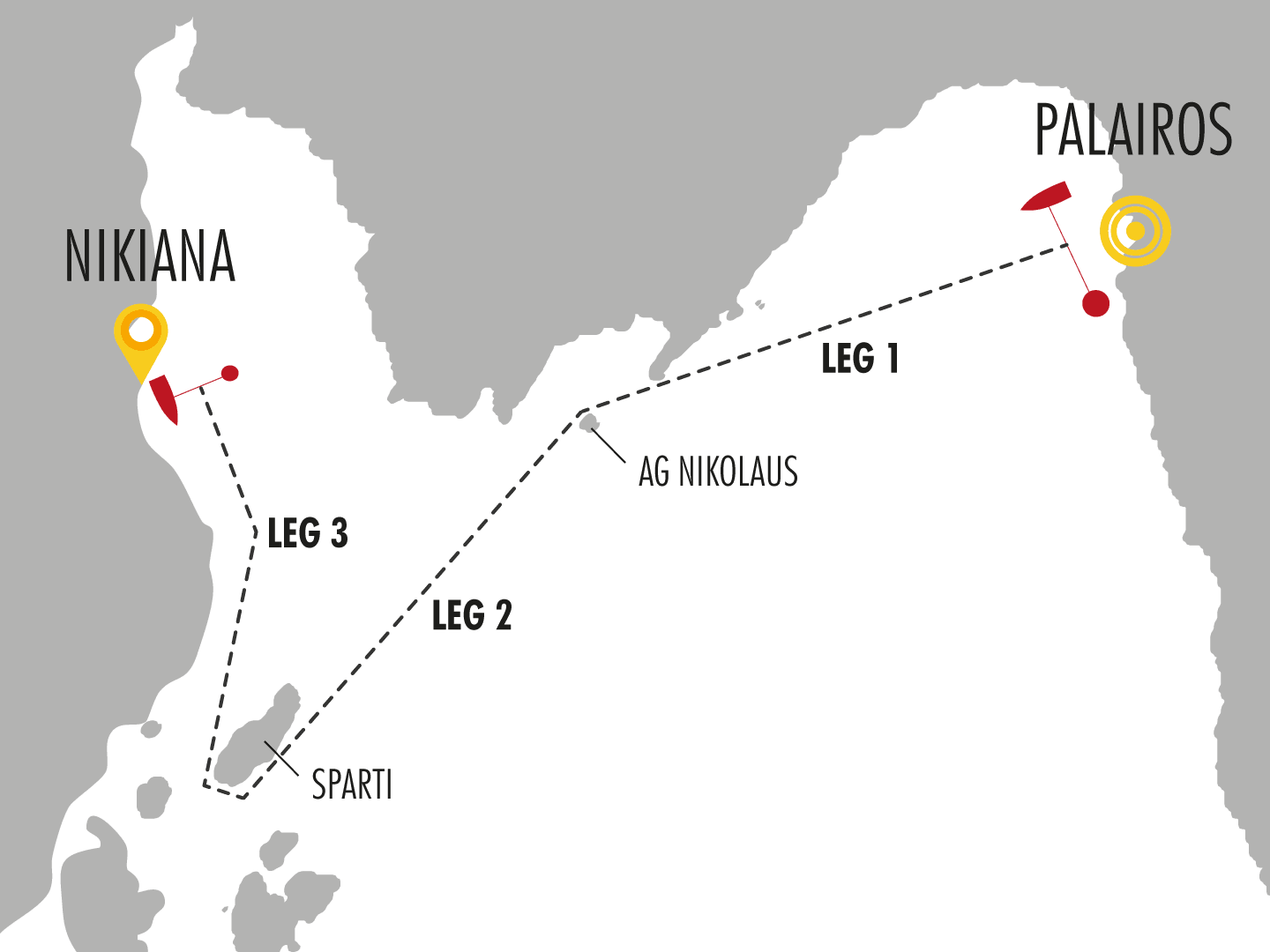 Feeder Race - The island of Sparti may be skipped by all competitors who will proceed directly to the finish line in Nikiana. Competitors will be informed of this change before the first boat rounds the island of Agia Nikolaus